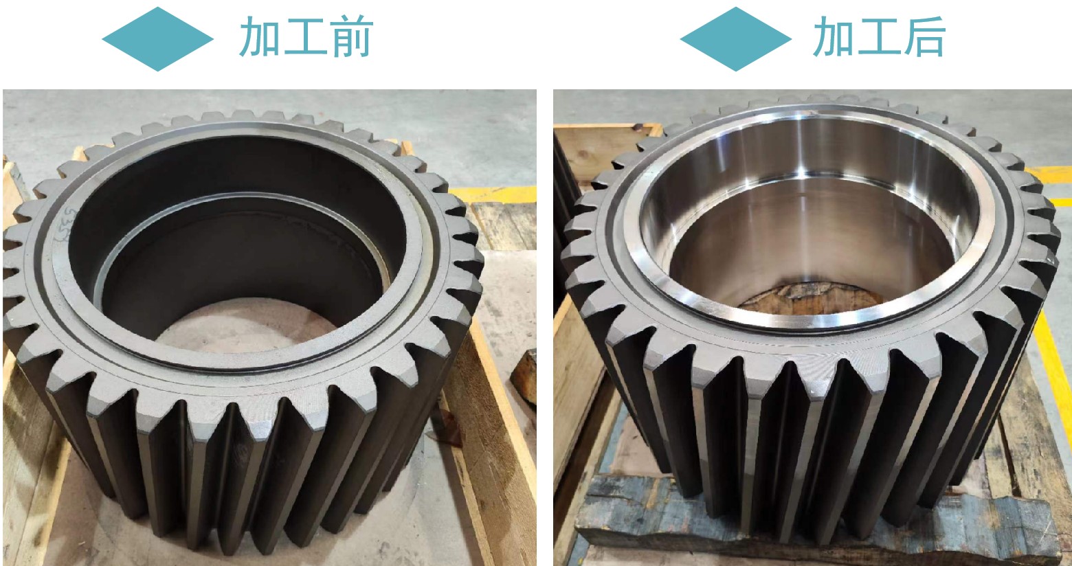 華菱CBN刀片加工風電齒輪前后對比效果: