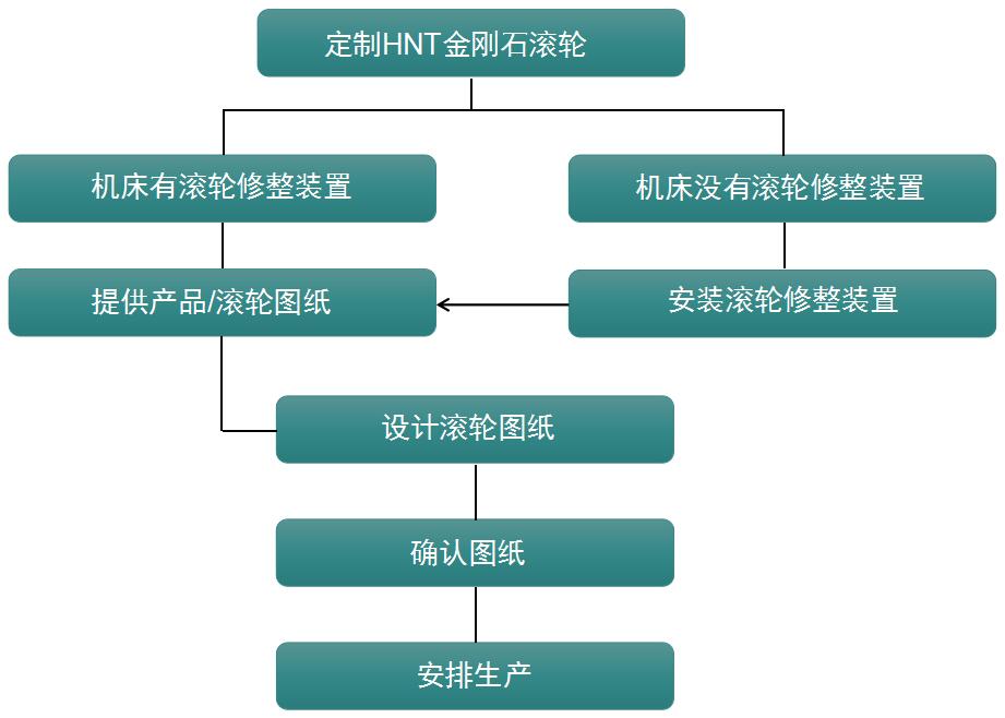 HNT金剛石滾輪的定制流程簡單分為兩類,一類是有圖紙,一類是沒有圖紙。具體流程如下圖。